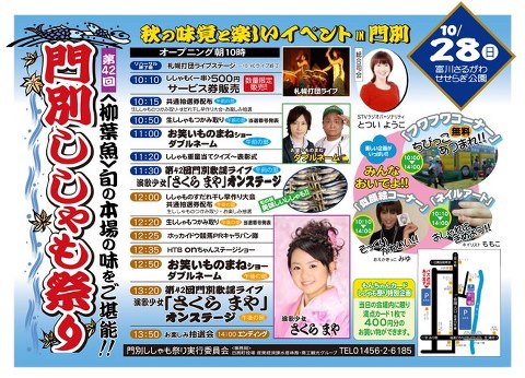 北海道日高町 第42回門別ししゃも祭り10月28日開催 2012年10月25日 最終更新日時 : 2012年10月25日 suzuki 味覚の秋、北海道日高町で「第42回門別ししゃも祭り」10月28日(日曜日) 富川さるがわ せせらぎ公園にて開催されます。 会場では美味しい「ししゃも」が食べられます。 問い合わせ 門別ししゃも祭り実行委員会 電話01456-2-6185 FacebooktwitterHatena