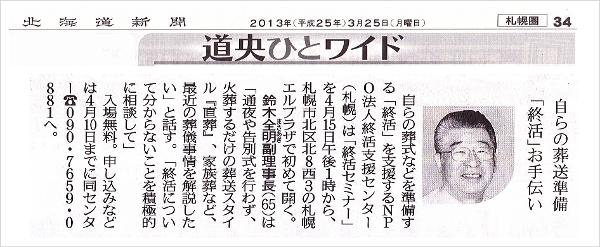 さっぽろエルプラザでの「終活セミナー」が北海道新聞で紹介されました。