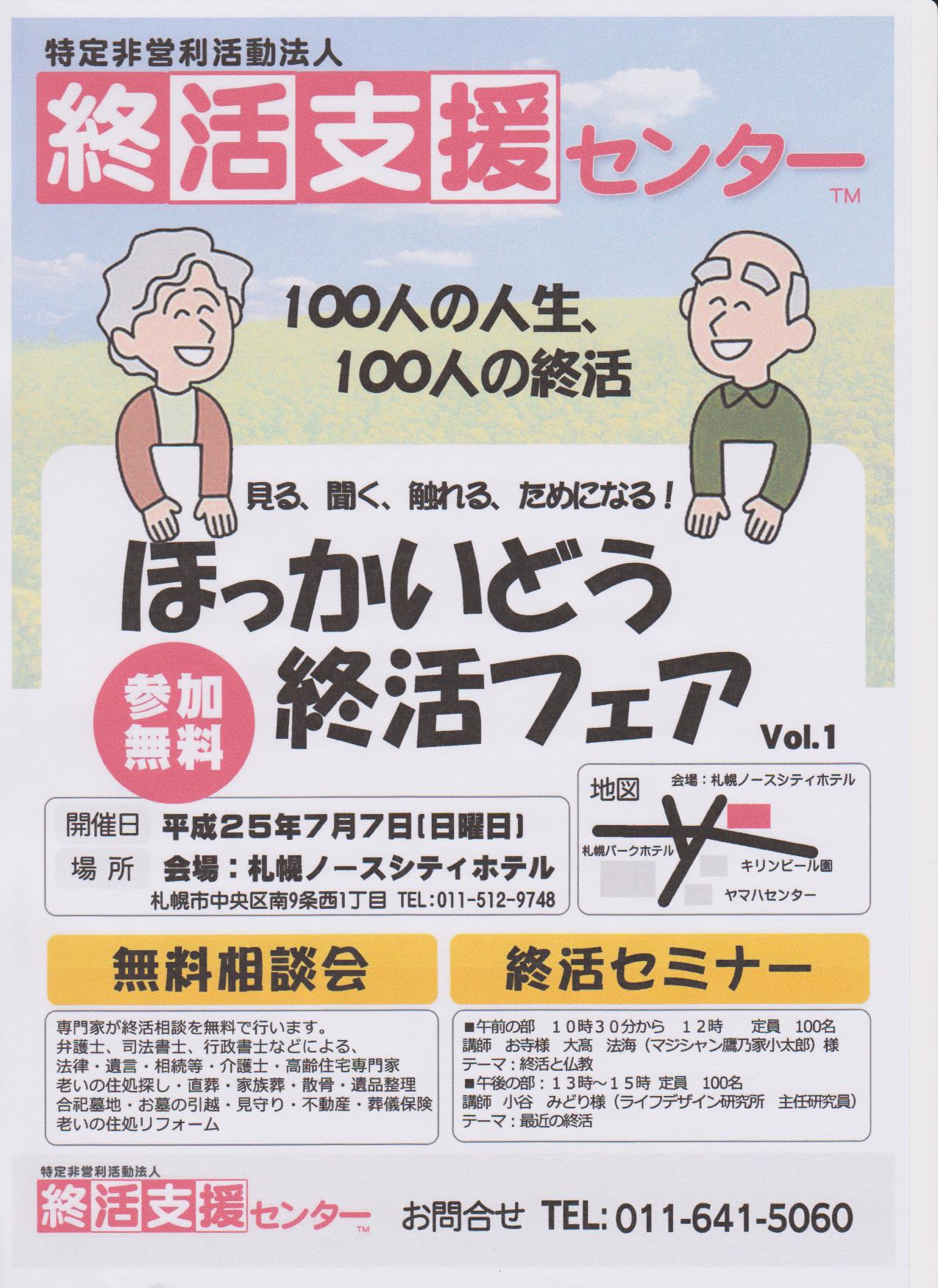 終活セミナー開催日5月21日 13時から 札幌エルプラザにて 2013年5月21日 最終更新日時 : 2013年5月21日 suzuki 今日は、「特定非営利活動法人 終活支援センター」主催の セミナー開催日ですが、準備に追われる一日です。 今日会場は 小さい方ですが定員の50名には達するようです。 参加者の皆さん 会場までの道のり気おつけくださいね。 6月セミナーは 90名の参加が 満席になりました。 又準備に追われそうです。 その後は 左 資料の 「ほっかいどう終活フェア} 開催準備に追われそうです。 FacebooktwitterHatena