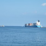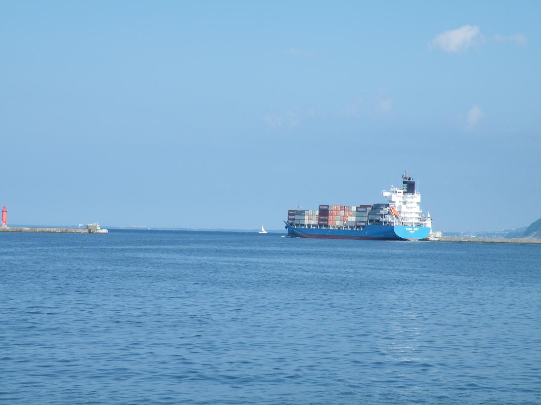 コンテナ船が、小樽からの