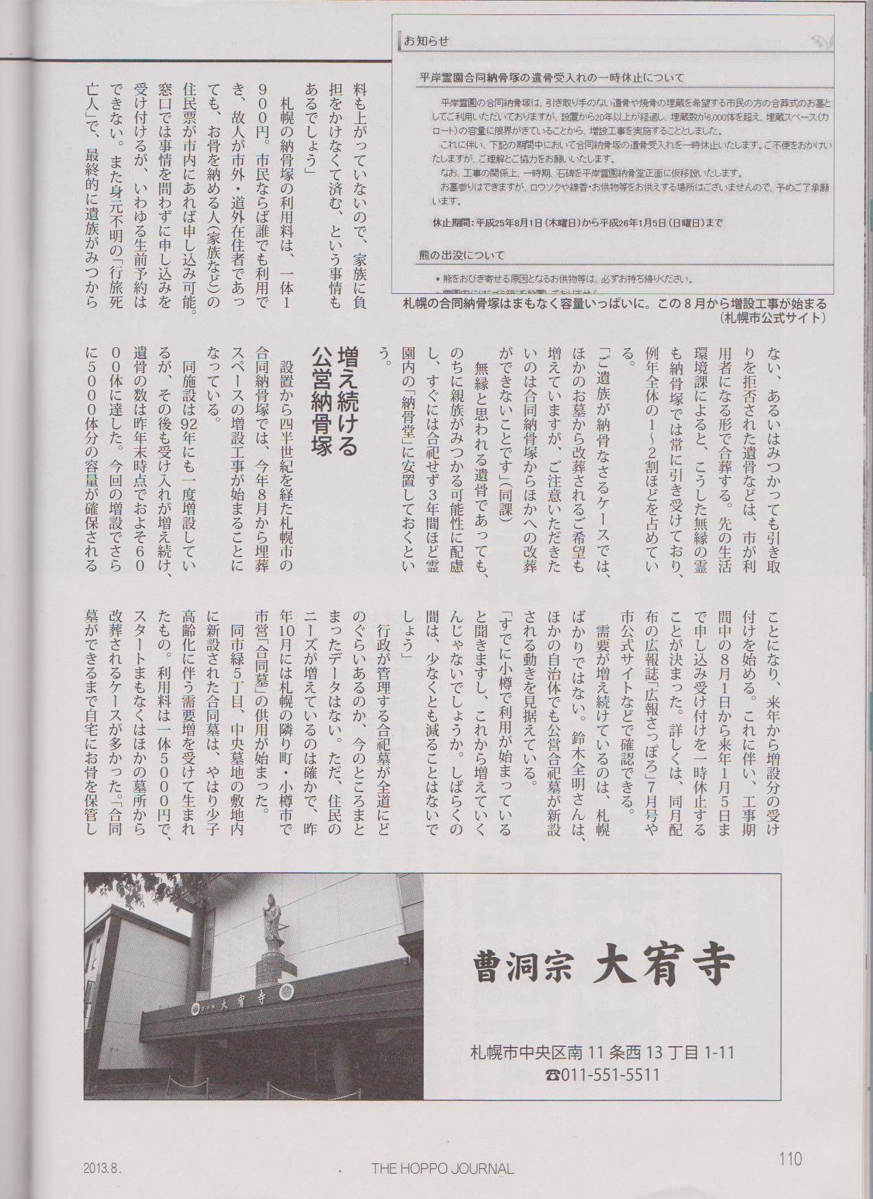 特集「合葬の世紀」北方ジャーナル8月号(1)