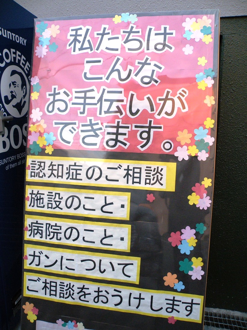 終活応援団 札幌市北区の、高齢者共同住宅前の立て看板。 2014年9月14日 最終更新日時 : 2014年9月14日 suzuki 終活時代ですが 札幌市北区の、高齢者共同住宅前に立てかけてある看板 敬老の日を前に 頼りたくなる文字が気になりました。 認知症のご相談 施設のこと 病院のこと ガンについて 等ご相談下さいとのこと。 終活時代 頼られる「特定非営利活動法人終活支援センター」を めざしていますが、一歩 一歩 進むことがより近道と思い 活動しています。 写真の看板が立っている高齢者共同住宅 ご紹介いたします。 特定非営利活動法人終活支援センター 相談電話 (011)641-5060 FacebooktwitterHatena