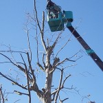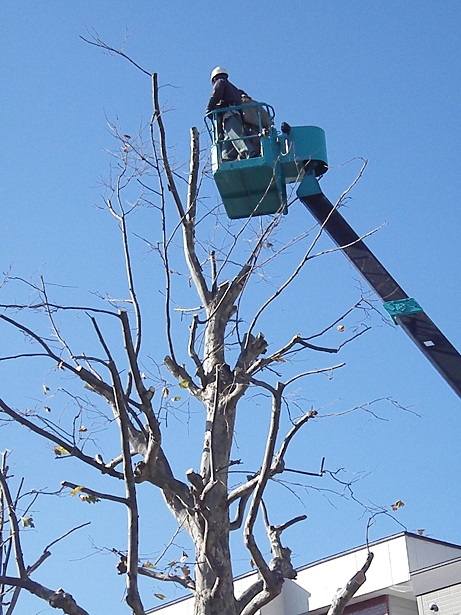 札幌市内で木々の剪定を行っているところに
