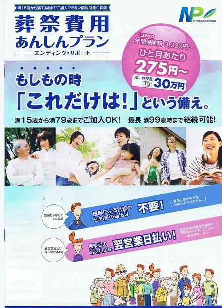 27年新年の挨拶回りで、古い友人が「俺も葬儀保険に、入っておこうかな」との