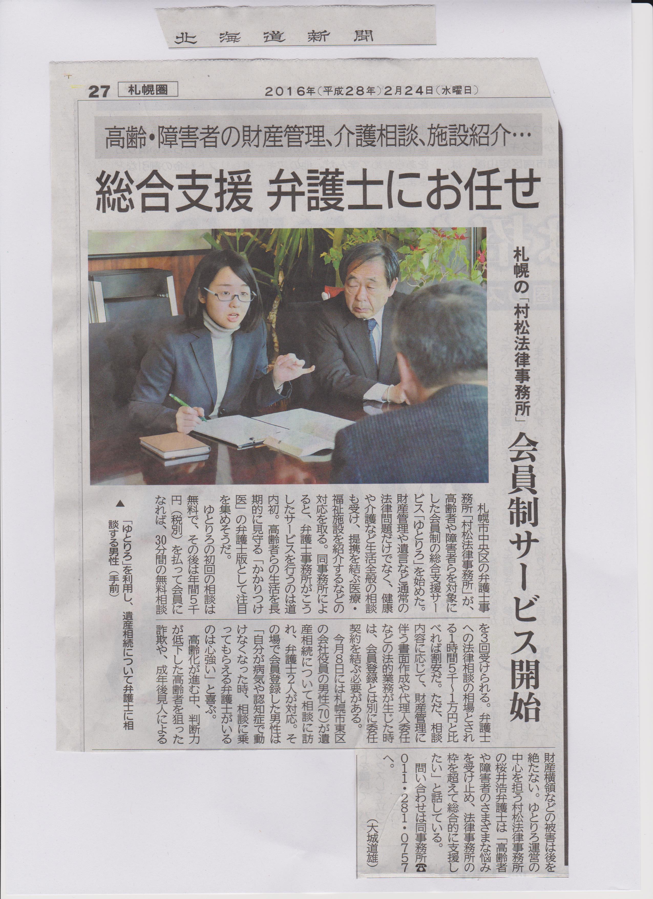 札幌市内の弁護士事務所「村松法律事務所」で、「ゆとりろ」スタート 終活のご相談は「一般社団法人終活支援センター」へ