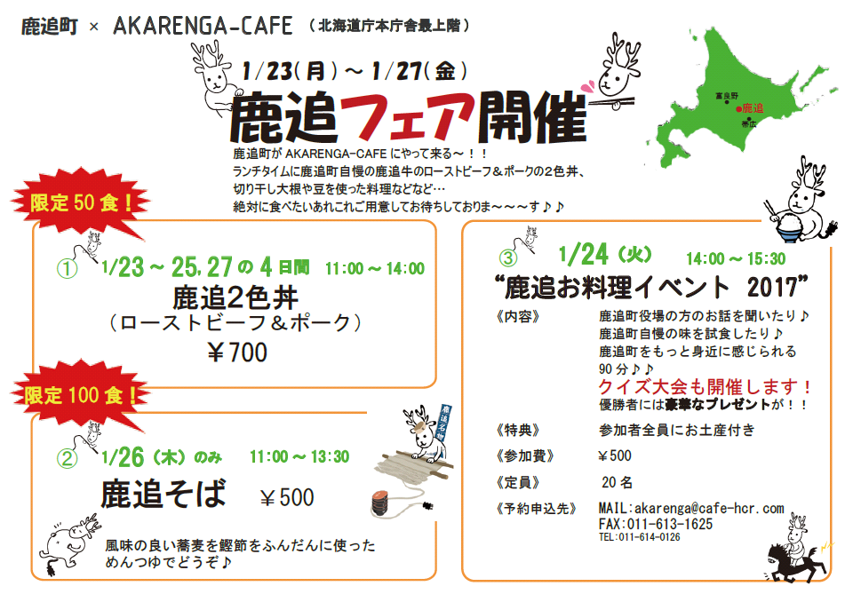 1月23日(月)~27日(金)の5日間、鹿追町と赤レンガカフェとの合同企画として「鹿追フェア」を開催
