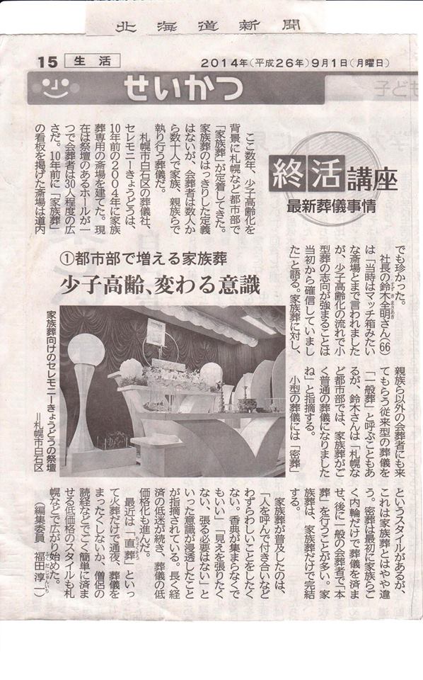 札幌市 白石区家族葬、白石区 直葬の専用式場