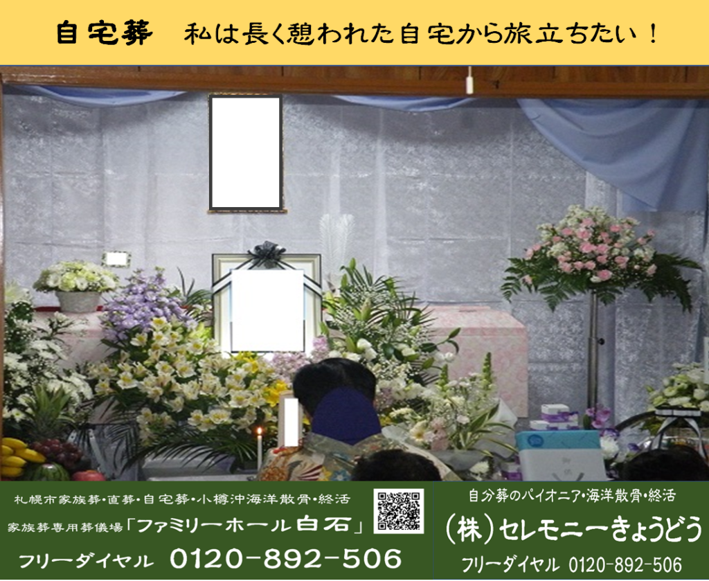 札幌市内近郊で自宅の葬儀増えている。家族葬直葬「ファミリーホール白石」、終活・小樽沖海洋散骨「セレモニーきょうどう」 YouTube28全ちゃんチャンネル自宅での葬儀増えている、札幌お葬儀ブログ札幌の葬儀社社長の独り言