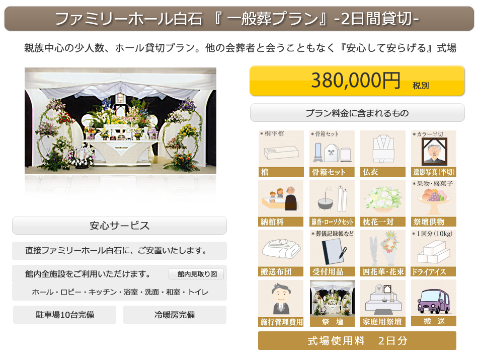 札幌初の ”家族葬専用ホール”「ファミリーホール白石」「心に響く葬儀」をいつも胸に、皆様のお手伝いをさせていただきます。